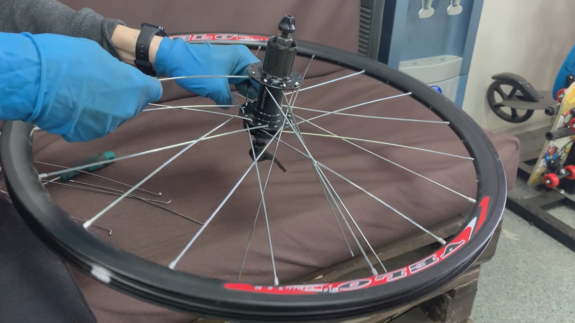 разборка колеса, оценка состояния втулки, обода, спиц;